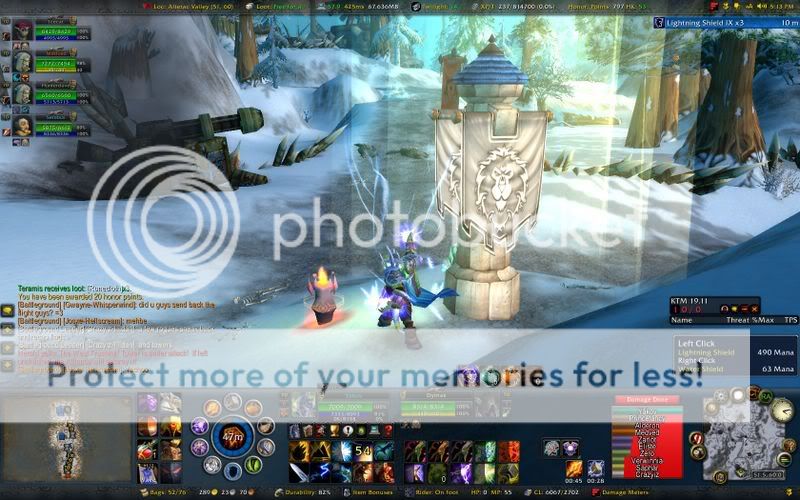 Muah! That picture was taken during the best AV match ever. While guarding that GY I was letting Horde pass so they would go on Offense and be out of our O's hair. About 7 passed until a mage, a rogue and warrior dismounted killed me and took it back. This made me very angry. So while waiting at SF to rez I alt-tabed started up WMP and threw on some Linkin Park Hybrid Theory. Whent back to the GY where only the mage remained, pulled the guards and killed them drank and killed the mage. After capping the GY I went to their cave and killed everything that came out, after a few min 3 more alliance joined me and about 10 horde were trapped inside their cave. I didnt die once after the three ganked me and it was alot of fun. Almost as much fun as pvping with kaid on vent.